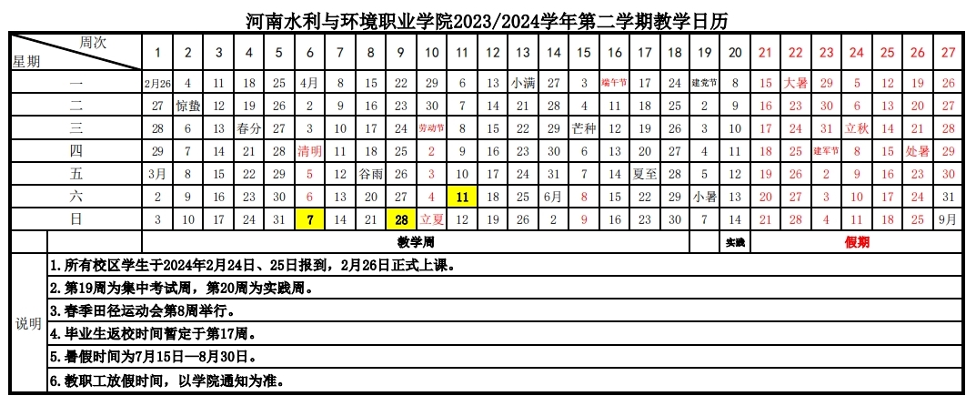 2023/2024学年第二学期教学日历现已发布,为方便安排工作,请查阅或下载。