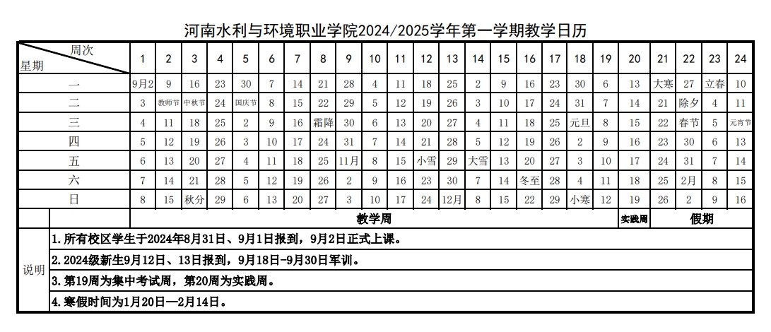2024/2025学年第一学期教学日历现已发布,为方便安排工作,请查阅或下载。