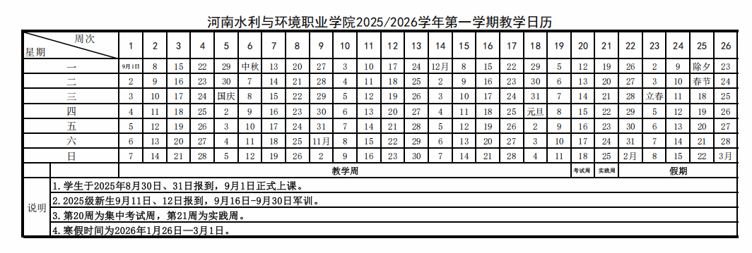 2025/2026学年第一学期教学日历现已发布,为方便安排工作,请查阅或下载。